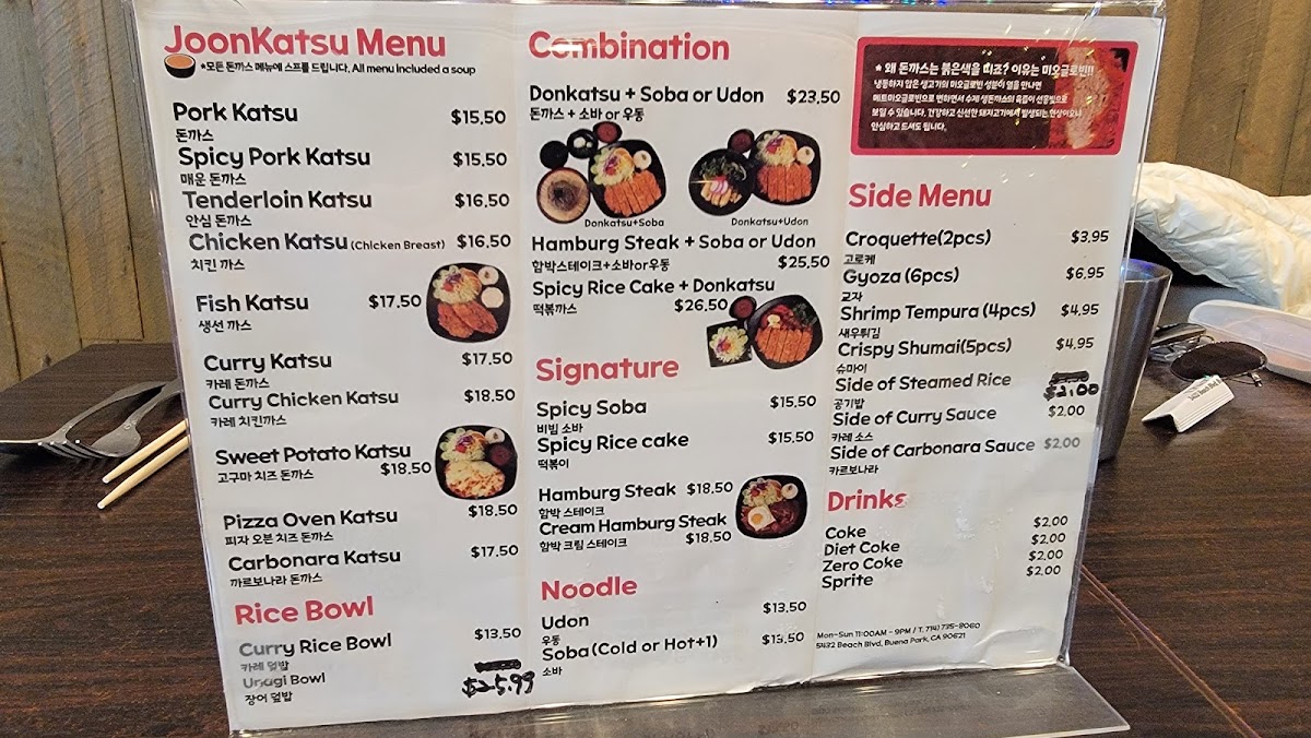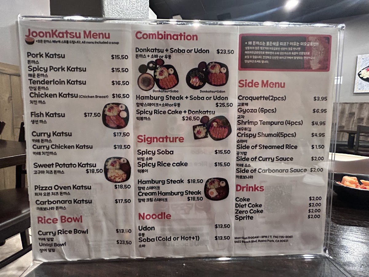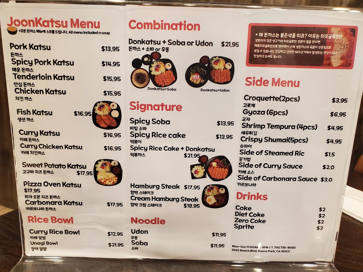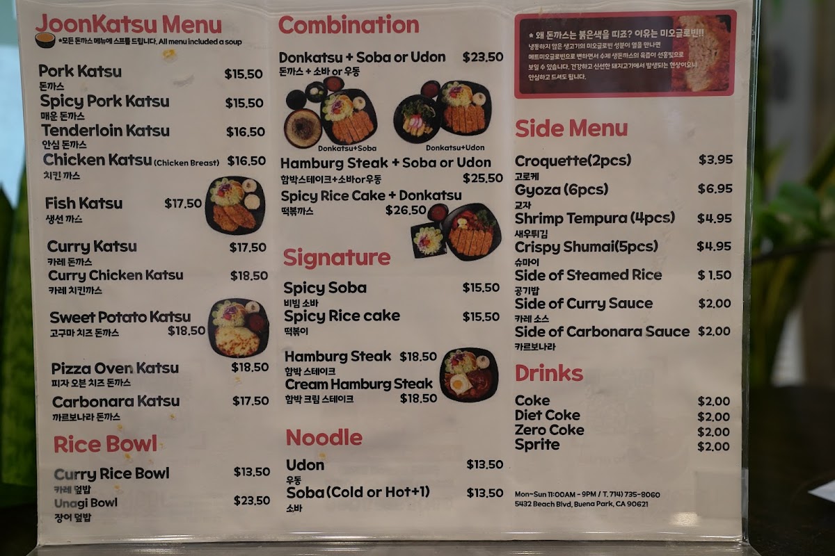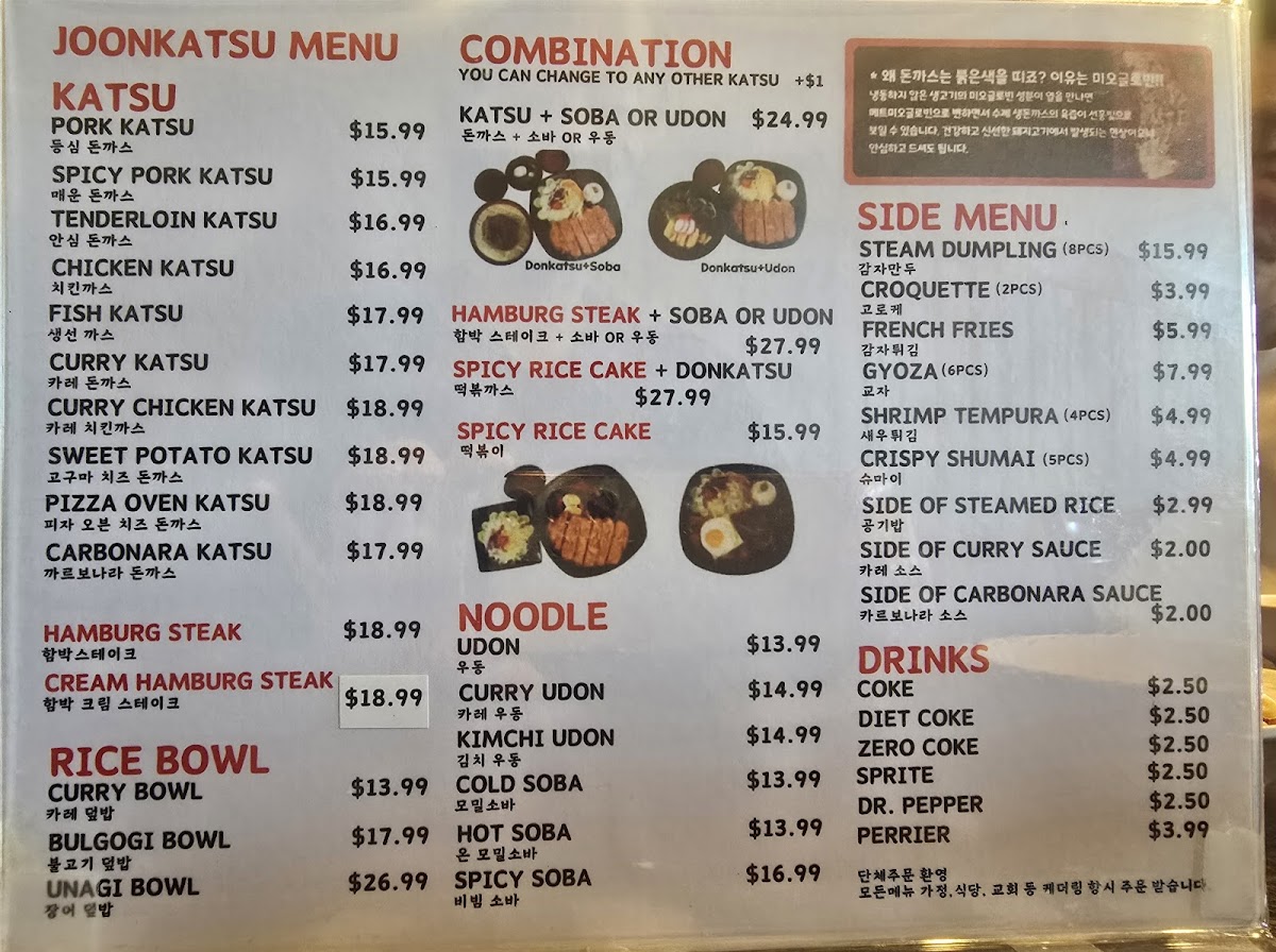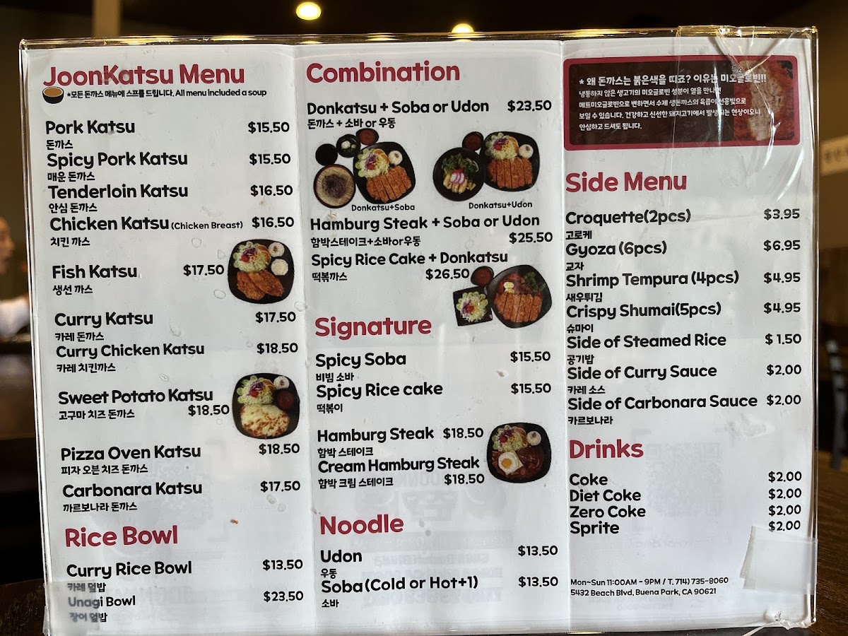 At Joon Katsu, you’ll experience a delightful variety of mouthwatering dishes that are sure to satisfy every craving. Whether you're in the mood for crispy, golden katsu or something a little more adventurous, the Joon Katsu Menu offers it all. Each dish is prepared with fresh, high-quality ingredients to create the perfect balance of flavors. From the classic pork katsu to the tender chicken and flavorful seafood options, there’s something for everyone to enjoy. With a cozy atmosphere and friendly service, it’s the ideal place to indulge in comfort food with a Japanese twist. Dive into the menu, and you’ll discover not just meals, but a true culinary experience that’s both satisfying and delicious.